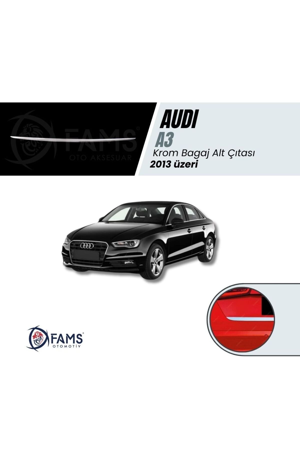 Audi A3 Uyumlu Krom Bagaj Alt Çıtası 2013 Üzeri Paslanmaz Çelik