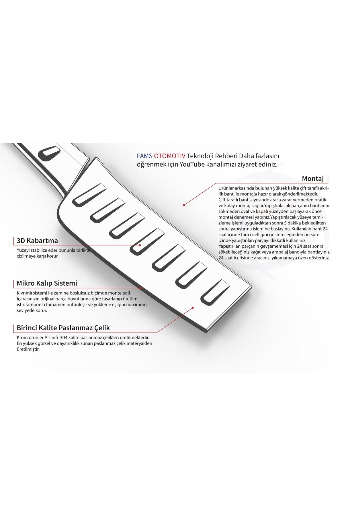 LÜTFEN DİKKAT! Değerli müşterimiz, Lütfen MONTAJ DENEMESİ yapmadan ürünü uygulamayınız.; Ürün Detayları: 3D kalıpla üretilmiş ürün, aracınıza mükemmel uyum sağlar.; Yüksek kaliteli 1. Sınıf krom malzemeden üretilmiş olup ekstra parlaklık sunar.; Paslanmaz çelikten üretilen bu ürün, dış etkenlere karşı maksimum dayanıklılık sağlar ve uzun süre ilk günkü görünümünü korur.; Garanti Koşulları: Krom ürünlerimiz, doğru montaj koşulları sağlandığında 2 yıl garantilidir.; Gönderim Bilgileri: Ürün, belirtilen teslimat adresine, anlaşmalı kargo firmalarıyla en geç 3 iş günü içinde gönderilecektir.; Ürünün güvenliği için deformasyona karşı dikkatle paketlenecektir.; Dikkat: – Paketinizi kargo görevlisinin yanında açın ve herhangi bir sorun durumunda tutanak tutturmayı unutmayın! – Koruyucu bantları sökülmüş, çizilmiş veya yeniden satışa uygun olmayan ürünlerin iadesi kabul edilmemektedir.; – Ürünü teslim almadan önce mutlaka kontrol ediniz.; – Eksik ya da hasar tespiti durumunda, görevliden “Hasar Tespit Tutanağı” istemeniz gerekmektedir.; – Bu tutanak olmadan eksik veya hasarlı ürünlerle ilgili işlem yapılamayacağını üzülerek belirtmek isteriz.; Montaj Bilgileri: Montajı kendiniz kolayca yapabilirsiniz.; Montaj yapılacak alanı tiner, ispirto veya alkol ile temizleyip kurumasını bekleyin.; Parçanın içindeki çift taraflı bandı sökmeden önce, yerleştirme denemesi yapın.; Bandı hafifçe ısıtarak (örneğin saç kurutma makinesiyle) montajı tamamlayın.; Öneri: Montajdan sonra aracınızı 24 saat boyunca yıkamamanız tavsiye edilir.; Not: Bu ürün oto yedek parçası olmayıp, aracınıza uyumlu birinci sınıf krom aksesuardır.; Herhangi bir sorunuz varsa bizimle iletişime geçmekten çekinmeyin!