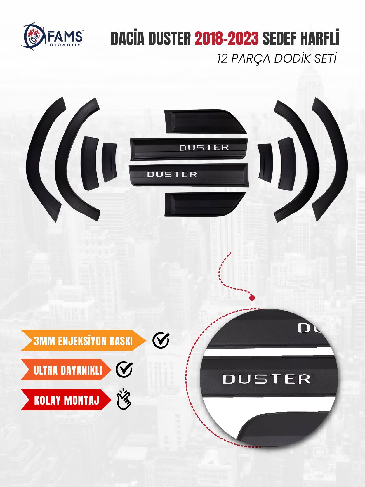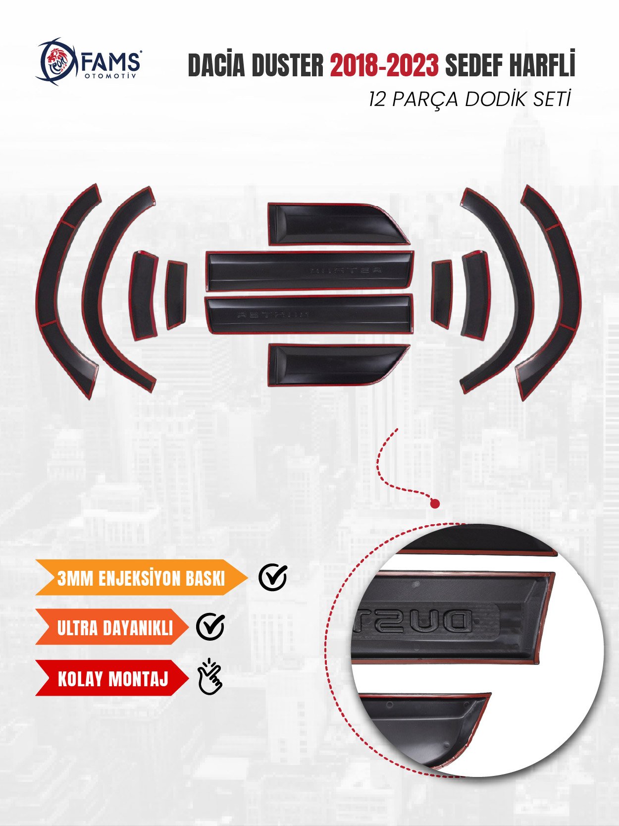 Ürün mat ABS plastikten üretilmektedir. ; Ürün Özellikleri: Ürünler arkasında bulunan yüksek kalite çift taraflı akrilik bant ile montaja hazır olarak gönderilmektedir. ; ÖNEMLİ NOT: Aracınıza uyumsuz olduğunu düşünüyorsanız lütfen montaj yapmayınız. ; Koruyucu bantları sökülmüş, montaj denemesi sırasında çizilmiş, yeniden satışa uygunsuz hale gelen hiçbir ürünün iadesi kabul edilmemektedir. ; Ürünü iade ederken tarafınıza gönderildiği şekilde paketlemeye özen gösteriniz, Montaj Talimatı: 1)Kuru ve tozsuz ortamda montaj yapınız. ; 2) Montaj yapmadan önce ürün üzerindeki çift taraflı bantların koruyucusunu açmadan uygulanacağı bölgede deneme yapınız. ; 3)Montaj sırasında ortam sıcaklığı 15°C ile 35°C arasında olmalıdır. ; Ortam sıcaklığı 15°C altında ise yüzeyi saç kurutma makinesi vb. ; ile ısıtarak montaj yapınız. ; 4) Yapıştırılacak yüzeyi pamuklu bez ispirto veya saf alkol ile titizlikle temizleyiniz. ; Yapıştırılacak yüzeyi temizledikten sonra toz ve yağdan koruyunuz. ; Yapıştırılacak yüzeyi ıslak mendil su, tiner, benzin, mazot, kolonya gibi yağlı ve katkılı maddeler ile TEMİZLEMEYİNİZ. ; 5) Yapıştırılacak yüzeye temizleme işlemi uyguladıktan sonra 5 dakika bekledikten sonra yapıştırma işlemine başlayınız. ; 6) Ürün üzerindeki çift taraflı bandın koruyucu yüzeyini sökerek yine oval ve kapalı yüzeyden başlayarak montaj yapınız. ; 7) Montaj işleminde yumuşak bez veya parmak uçları ile ürün üzerinden sıvazlayarak oturtunuz. ; Parça üzerine bir dakika süreli baskı ve yine saç kurutma makinası vb. ; yardımıyla ısı uygulayınız. ; LÜTFEN DİKKAT : Kullanılan bant 24 saat içinde tam özelliğini göstereceğinden bu süre içinde yapıştırılan parçayı dikkatli kullanınız. ; Yapıştırılan parçanın gevşememesi için 24 saat sonra sökebileceğiniz kağıt veya ambalaj bandıyla bantlayınız. ; 24 saat içerisinde aracınızı yıkamamaya özen gösteriniz. ; İYİ ALIŞVERİŞLER DİLERİZ…;