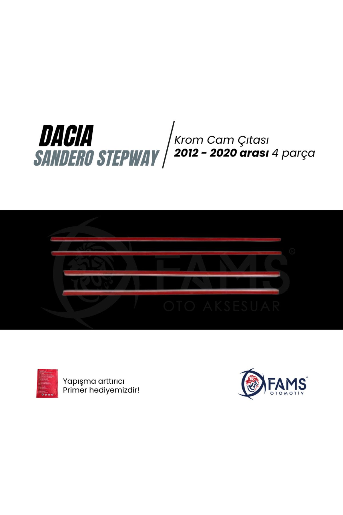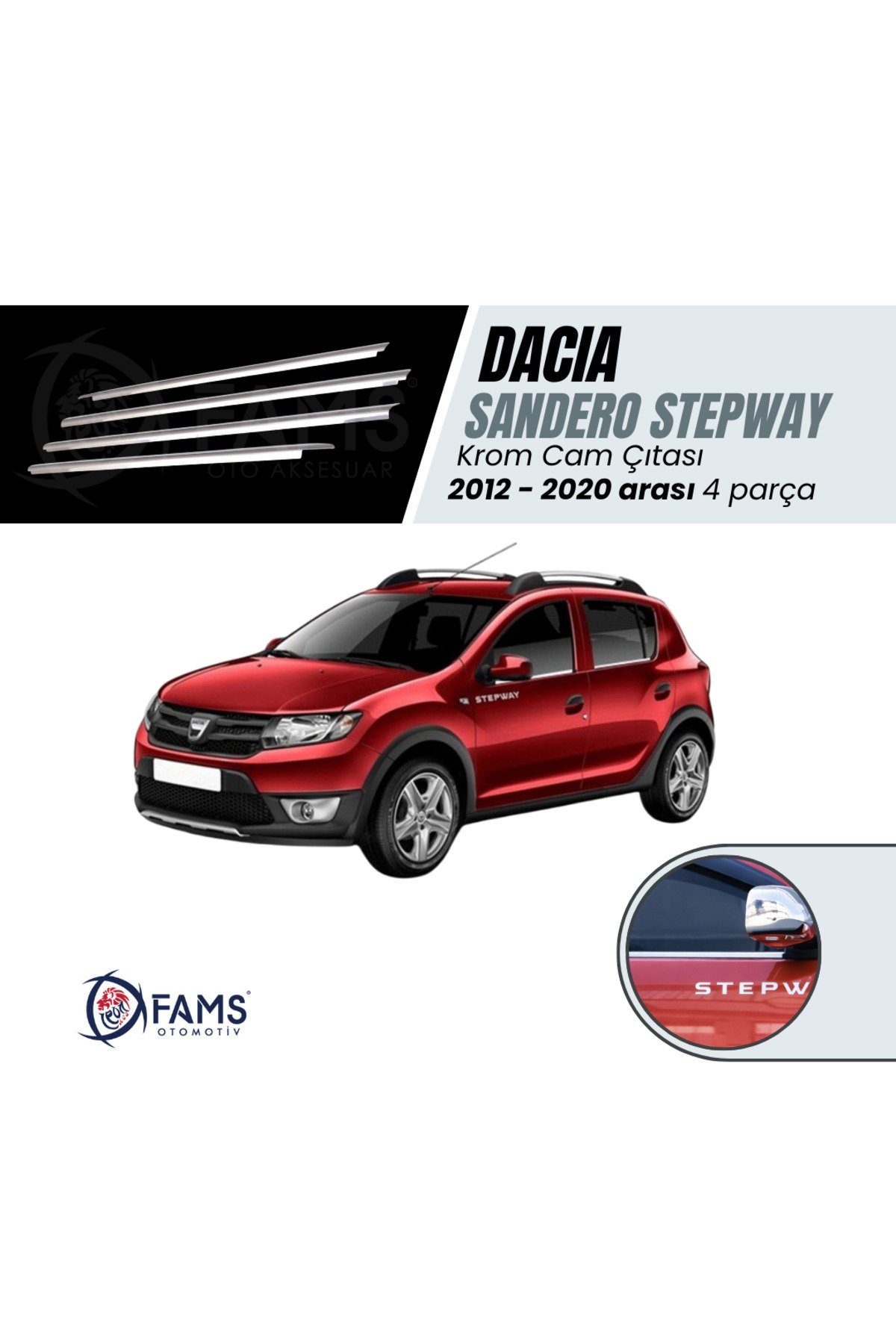 Dacia Sandero Stepway Krom Cam Çıtası Seti 4 Prç, 2012-2020 P,çelik uyumlu