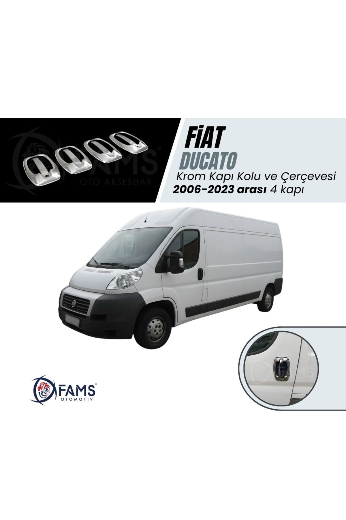 Fiat Ducato Krom Kapı Kolu Çerçeve 4 Kapı 8 Parça 2006-2023 Arası Paslanmaz Çelik