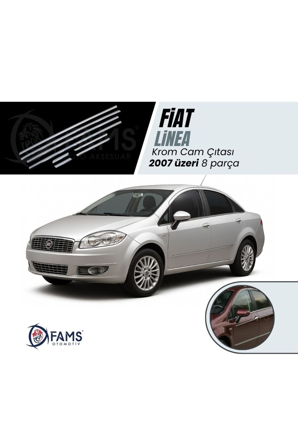 – Fiat Linea model araçlarınız için özel olarak tasarlanmış, paslanmaz çelikten üretilmiş krom cam çıtalar.; – Araç görselliğini zenginleştirirken aynı zamanda dayanıklılığı artırır; 2007 ve üzeri modeller için idealdir.; – Kolay montaj imkanı sunar; araç camlarına zarar vermeden hızlı ve pratik bir şekilde uygulanabilir.; – Paslanmaz çelik malzemesi sayesinde uzun süreli kullanım vaat eder; dış etkenlere karşı dirençlidir.; – Estetik görünümü ile araçınızın değerini artırırken, aynı zamanda sürüş güvenliğini de destekler.; FAMS OTO AKSESUAR GÜVENCESİYLE – GENEL ÜRÜN BİLGİLENDİRME METNİ 🔔 DİKKAT! Değerli müşterimiz, ürününüzü araca uygulamadan önce kesinlikle ürünün yönlerini doğru uygulamak amacıyla montaj denemesi yapmadan yerleşimini kontrol ediniz.; Ürününüzün doğru şekilde uygulanması, hem kullanım ömrünü hem de estetik görünümünü doğrudan etkilemektedir.; Yanlış yapılan montaj sonrasında sök-tak yapılan ürünler yapışkan özelliğini kaybetmektedir.; Bu nedenle bu tür durumlarda ürün hasarlı olarak değerlendirilip maalesef iadesi kabul edilememektedir.; 🔍 ÜRÜN DETAYLARI • Oto Krom Aksesuarımız, 3D kalıplama teknolojisiyle üretilmiş olup aracınızın hatlarına mükemmel uyum sağlar.; • Krom ürünler A sınıfı A 304 kalite paslanmaz çelikten üretilmektedir.; • Paslanmaz çelik yapısı sayesinde dış etkenlere karşı maksimum dayanıklılık gösterir, uzun süre boyunca ilk günkü parlaklığını ve formunu korur.; • Bu ürün, estetik ve koruyucu amaçlı geliştirilmiş bir aksesuar ürünü olup, oto yedek parçası değildir.; 🛡️ GARANTİ KOŞULLARI • Tüm krom ürünlerimiz, doğru montaj yapıldığı takdirde 2 yıl garantilidir.; • Montaj hatalarından kaynaklı deformasyonlar garanti kapsamı dışındadır.; 📦 GÖNDERİM ve PAKETLEME BİLGİLERİ • Siparişleriniz, en geç 3 iş günü içerisinde anlaşmalı kargo firmaları aracılığıyla adresinize gönderilir.; • Tüm ürünler, taşıma sürecinde deformasyona karşı özel olarak paketlenmektedir.; 🔒 Teslimat Anında Dikkat Edilmesi Gerekenler: Kargonuzu mutlaka kargo görevlisinin önünde kontrol ediniz.; Herhangi bir hasar, eksik parça ya da sorun olması halinde mutlaka “Hasar Tespit Tutanağı” düzenlettiriniz.; (hasar tespit tutanağı olmayan hasarlı iadeler maalesef kabul edilememektedir.; ) Koruyucu bandı sökülmüş, çizilmiş veya yeniden satışa uygun olmayan ürünlerin iadesi kabul edilmemektedir.; 🛠️ MONTAJ BİLGİLERİ • Montaj işlemi son derece kolaydır; ekstra profesyonel destek gerekmez.; • Uygulama yapılacak yüzeyin temizliği önemlidir.; Ürün ile birlikte gönderdiğimiz Primer mendil ile veya tiner, alkol, ispirto ile yüzeyi temizleyin ve tamamen kurumasını bekleyin.; • Ürünün iç yüzeyindeki çift taraflı bandı sökmeden önce parçayı aracınızda prova ediniz.; • Bandı söktükten sonra montaj öncesinde hafifçe ısıtarak (örneğin saç kurutma makinesi ile) yapışma gücünü artırabilirsiniz.; • Montaj sonrası 24 saat boyunca aracınızı yıkamayınız ve basınçlı suyla temas ettirmeyiniz.; 💬 SORULARINIZ MI VAR? Bizimle iletişime geçmekten çekinmeyin.; FAMS OTO AKSESUAR olarak memnuniyetiniz bizim için her şeyden önemli!