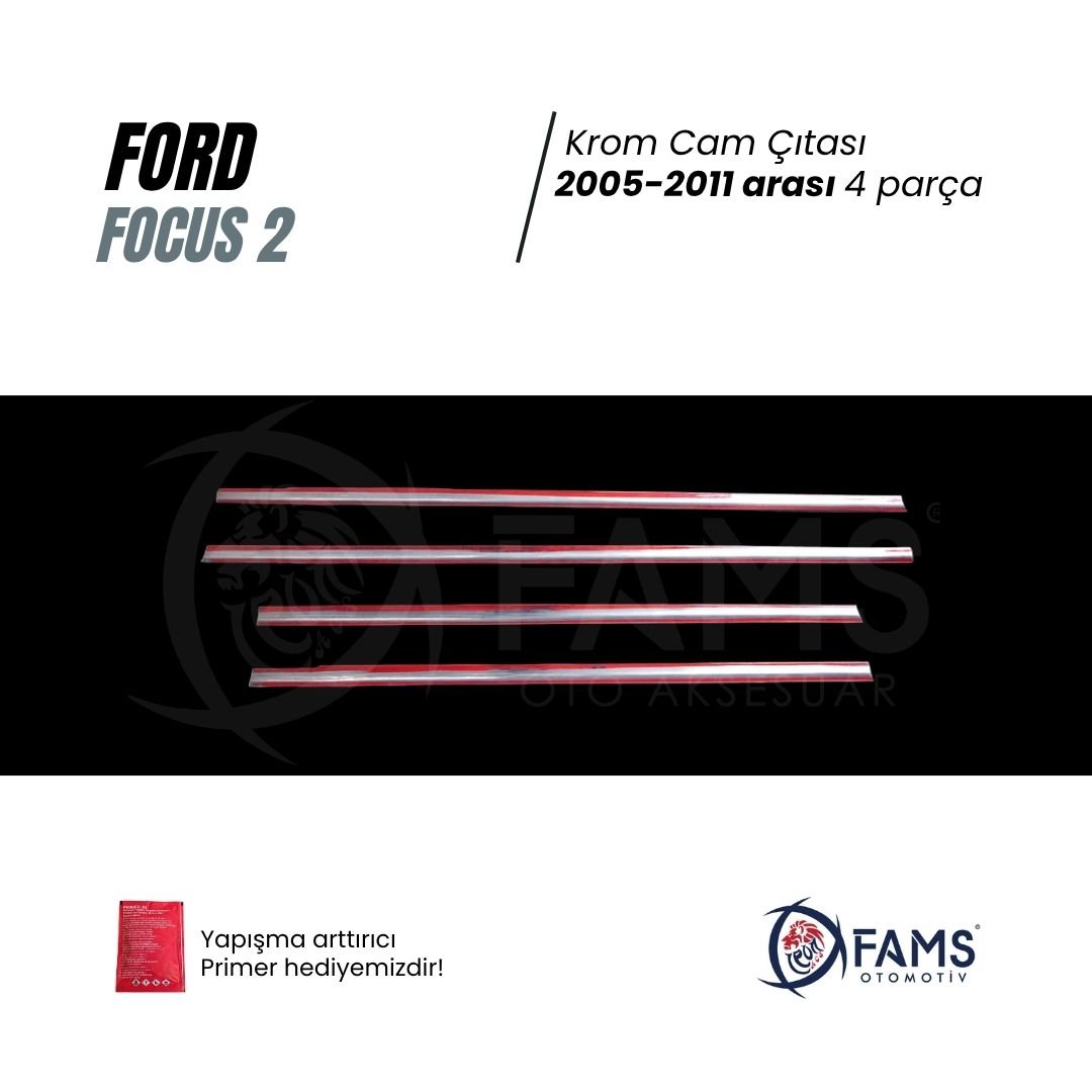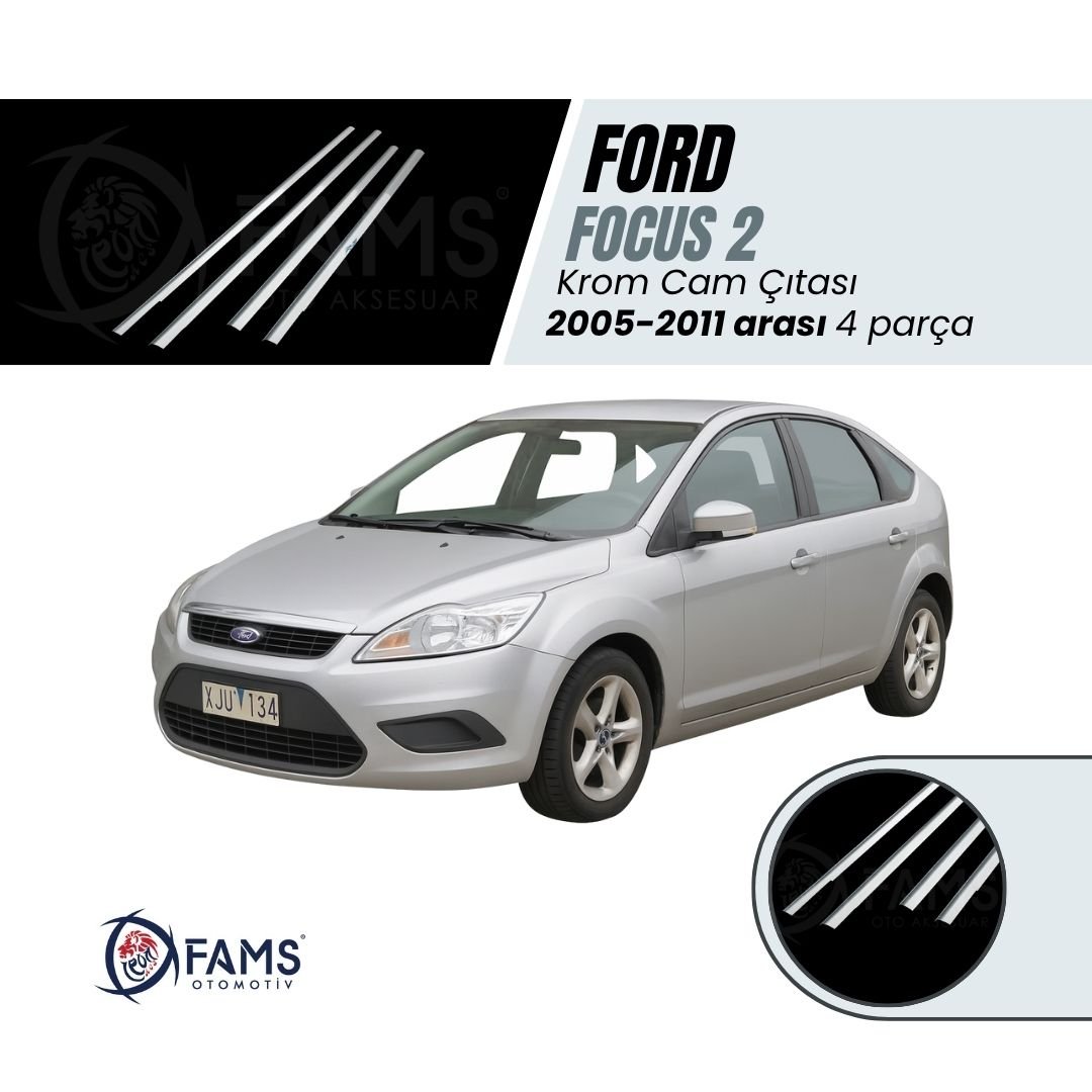- 🚗 F. Focus 2 HB 2005-2011 – Krom Cam Çıtası 4 Parça Paslanmaz Çelik (P.Çelik)