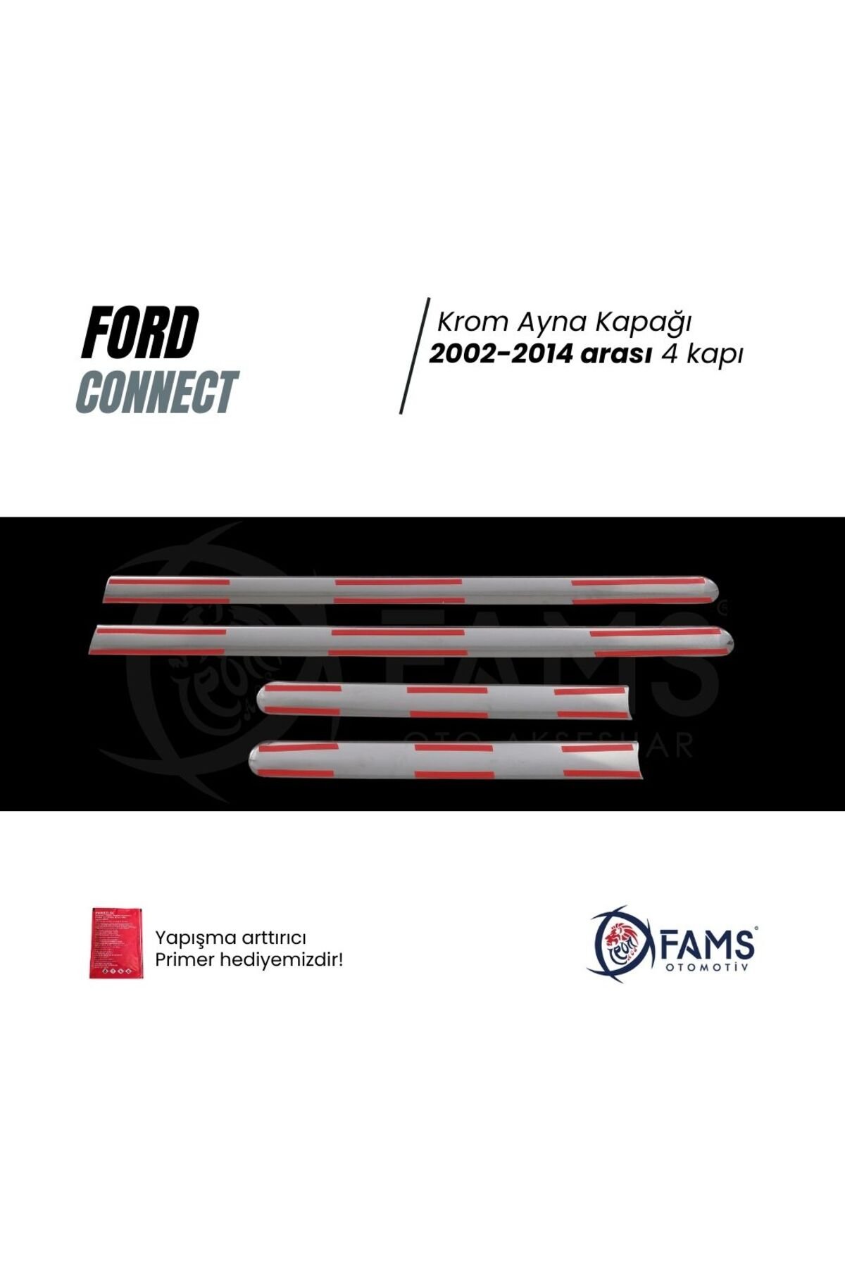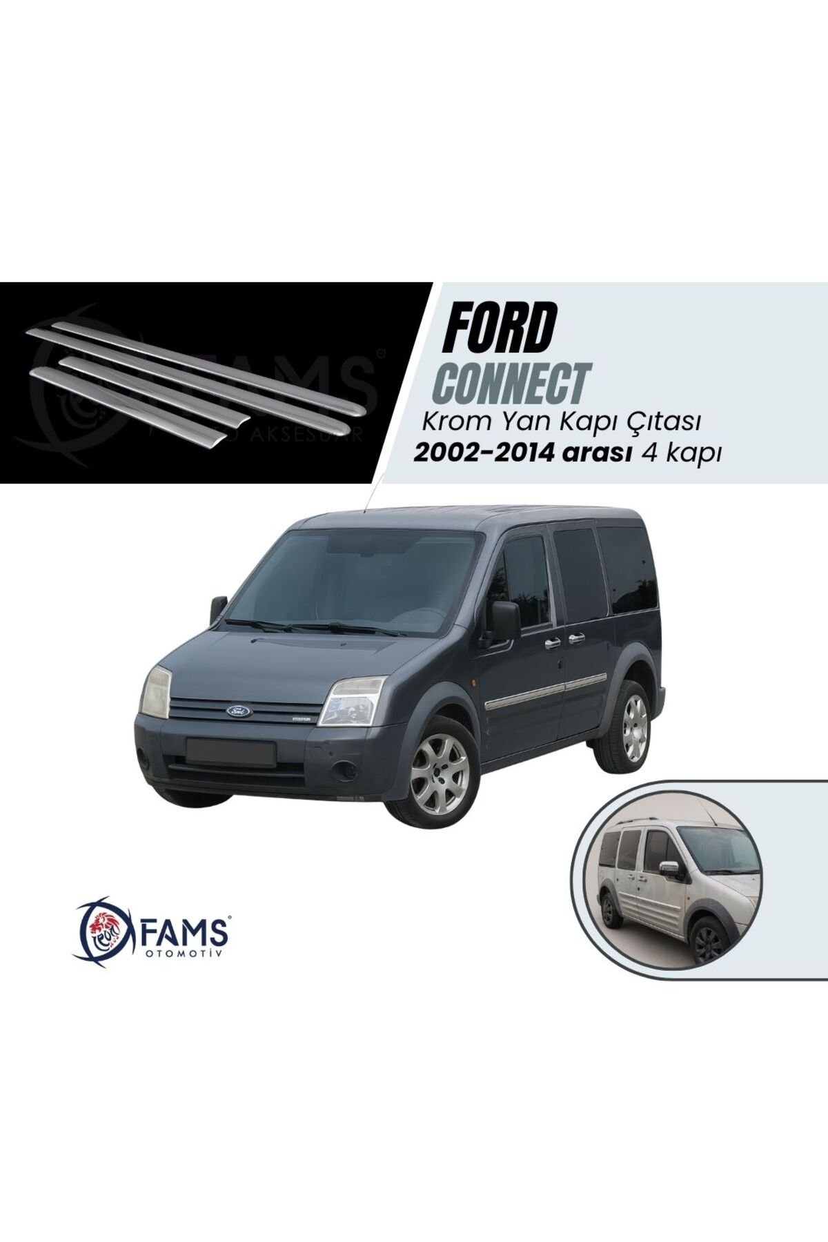 F.; Connect Uyumlu Krom Yan Kapı Çıtası 4 Kapı 2002-2014 P.; Çelik Uyumlu F.; Connect 2002-2014 modelleriyle tam uyumlu, krom kapı çıtası ile aracınızın dış görünümünü modernleştirin.; Dayanıklı çelik malzeme kullanılarak üretilmiş olup, uzun ömürlü ve sağlam bir kullanım sunar.; Uzun tasarım sayesinde, kapıların yanlarına şık bir dokunuş ekler ve aracınızın estetiğini artırır.; Yapışma arttırıcı primer mendil hediye FAMS OTO AKSESUAR GÜVENCESİYLE – GENEL ÜRÜN BİLGİLENDİRME METNİ 🔔 DİKKAT! Değerli müşterimiz, ürününüzü araca uygulamadan önce kesinlikle ürünün yönlerini doğru uygulamak amacıyla montaj denemesi yapmadan yerleşimini kontrol ediniz.; Ürününüzün doğru şekilde uygulanması, hem kullanım ömrünü hem de estetik görünümünü doğrudan etkilemektedir.; Yanlış yapılan montaj sonrasında sök-tak yapılan ürünler yapışkan özelliğini kaybetmektedir.; Bu nedenle bu tür durumlarda ürün hasarlı olarak değerlendirilip maalesef iadesi kabul edilememektedir.; 🔍 ÜRÜN DETAYLARI • Oto Krom Aksesuarımız, 3D kalıplama teknolojisiyle üretilmiş olup aracınızın hatlarına mükemmel uyum sağlar.; • Krom ürünler A sınıfı A 304 kalite paslanmaz çelikten üretilmektedir.; • Paslanmaz çelik yapısı sayesinde dış etkenlere karşı maksimum dayanıklılık gösterir, uzun süre boyunca ilk günkü parlaklığını ve formunu korur.; • Bu ürün, estetik ve koruyucu amaçlı geliştirilmiş bir aksesuar ürünü olup, oto yedek parçası değildir.; 🛡️ GARANTİ KOŞULLARI • Tüm krom ürünlerimiz, doğru montaj yapıldığı takdirde 2 yıl garantilidir.; • Montaj hatalarından kaynaklı deformasyonlar garanti kapsamı dışındadır.; 📦 GÖNDERİM ve PAKETLEME BİLGİLERİ • Siparişleriniz, en geç 3 iş günü içerisinde anlaşmalı kargo firmaları aracılığıyla adresinize gönderilir.; • Tüm ürünler, taşıma sürecinde deformasyona karşı özel olarak paketlenmektedir.; 🔒 Teslimat Anında Dikkat Edilmesi Gerekenler: Kargonuzu mutlaka kargo görevlisinin önünde kontrol ediniz.; Herhangi bir hasar, eksik parça ya da sorun olması halinde mutlaka “Hasar Tespit Tutanağı” düzenlettiriniz.; (hasar tespit tutanağı olmayan hasarlı iadeler maalesef kabul edilememektedir.; ) Koruyucu bandı sökülmüş, çizilmiş veya yeniden satışa uygun olmayan ürünlerin iadesi kabul edilmemektedir.; 🛠️ MONTAJ BİLGİLERİ • Montaj işlemi son derece kolaydır; ekstra profesyonel destek gerekmez.; • Uygulama yapılacak yüzeyin temizliği önemlidir.; Ürün ile birlikte gönderdiğimiz Primer mendil ile veya tiner, alkol, ispirto ile yüzeyi temizleyin ve tamamen kurumasını bekleyin.; • Ürünün iç yüzeyindeki çift taraflı bandı sökmeden önce parçayı aracınızda prova ediniz.; • Bandı söktükten sonra montaj öncesinde hafifçe ısıtarak (örneğin saç kurutma makinesi ile) yapışma gücünü artırabilirsiniz.; • Montaj sonrası 24 saat boyunca aracınızı yıkamayınız ve basınçlı suyla temas ettirmeyiniz.; 💬 SORULARINIZ MI VAR? Bizimle iletişime geçmekten çekinmeyin.; FAMS OTO AKSESUAR olarak memnuniyetiniz bizim için her şeyden önemli!