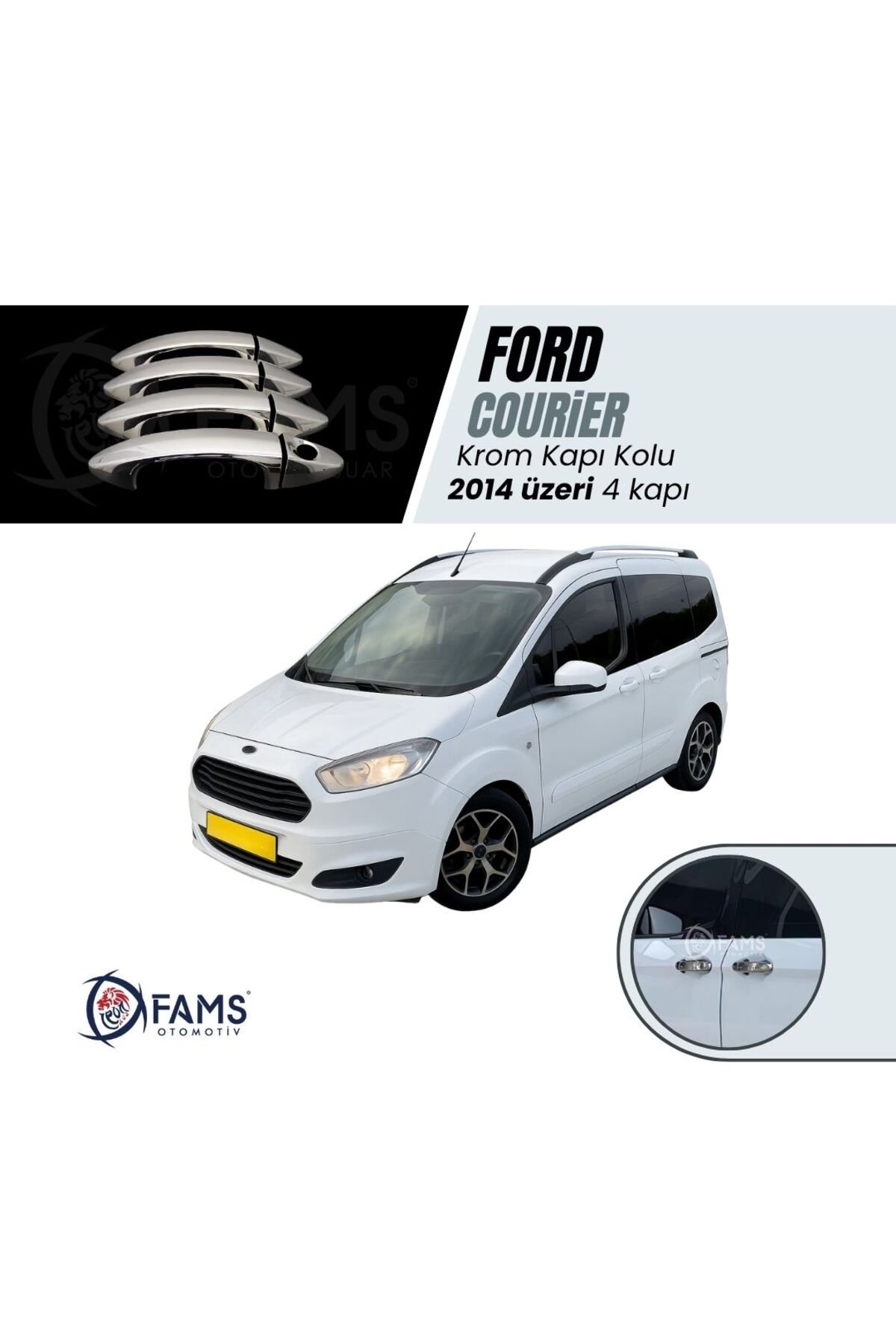 F.; Tourneo Courier Krom Kapı Kolu 4 Kapı 2014 Üzeri P.; Çelik Uyumlu Krom kaplama tasarımı ile aracınıza modern ve şık bir görünüm kazandırır.; 4 kapı için özel olarak üretilmiş olup, aracınızın tüm kapılarına uyum sağlar.; 2014 model F.; Tourneo Courier araçlarla tam uyumlu, kolay montaj imkanı sunar.; Dayanıklı çelik malzemesi sayesinde uzun ömürlü kullanım vaat eder.; Aracınızın kapılarına kolayca takılabilen bu ürün, pratik bir çözüm sunar.; Yapışma arttırıcı primer mendil hediye.; FAMS OTO AKSESUAR GÜVENCESİYLE – GENEL ÜRÜN BİLGİLENDİRME METNİ 🔔 DİKKAT! Değerli müşterimiz, ürününüzü araca uygulamadan önce kesinlikle ürünün yönlerini doğru uygulamak amacıyla montaj denemesi yapmadan yerleşimini kontrol ediniz.; Ürününüzün doğru şekilde uygulanması, hem kullanım ömrünü hem de estetik görünümünü doğrudan etkilemektedir.; Yanlış yapılan montaj sonrasında sök-tak yapılan ürünler yapışkan özelliğini kaybetmektedir.; Bu nedenle bu tür durumlarda ürün hasarlı olarak değerlendirilip maalesef iadesi kabul edilememektedir.; 🔍 ÜRÜN DETAYLARI • Oto Krom Aksesuarımız, 3D kalıplama teknolojisiyle üretilmiş olup aracınızın hatlarına mükemmel uyum sağlar.; • Krom ürünler A sınıfı A 304 kalite paslanmaz çelikten üretilmektedir.; • Paslanmaz çelik yapısı sayesinde dış etkenlere karşı maksimum dayanıklılık gösterir, uzun süre boyunca ilk günkü parlaklığını ve formunu korur.; • Bu ürün, estetik ve koruyucu amaçlı geliştirilmiş bir aksesuar ürünü olup, oto yedek parçası değildir.; 🛡️ GARANTİ KOŞULLARI • Tüm krom ürünlerimiz, doğru montaj yapıldığı takdirde 2 yıl garantilidir.; • Montaj hatalarından kaynaklı deformasyonlar garanti kapsamı dışındadır.; 📦 GÖNDERİM ve PAKETLEME BİLGİLERİ • Siparişleriniz, en geç 3 iş günü içerisinde anlaşmalı kargo firmaları aracılığıyla adresinize gönderilir.; • Tüm ürünler, taşıma sürecinde deformasyona karşı özel olarak paketlenmektedir.; 🔒 Teslimat Anında Dikkat Edilmesi Gerekenler: Kargonuzu mutlaka kargo görevlisinin önünde kontrol ediniz.; Herhangi bir hasar, eksik parça ya da sorun olması halinde mutlaka “Hasar Tespit Tutanağı” düzenlettiriniz.; (hasar tespit tutanağı olmayan hasarlı iadeler maalesef kabul edilememektedir.; ) Koruyucu bandı sökülmüş, çizilmiş veya yeniden satışa uygun olmayan ürünlerin iadesi kabul edilmemektedir.; 🛠️ MONTAJ BİLGİLERİ • Montaj işlemi son derece kolaydır; ekstra profesyonel destek gerekmez.; • Uygulama yapılacak yüzeyin temizliği önemlidir.; Ürün ile birlikte gönderdiğimiz Primer mendil ile veya tiner, alkol, ispirto ile yüzeyi temizleyin ve tamamen kurumasını bekleyin.; • Ürünün iç yüzeyindeki çift taraflı bandı sökmeden önce parçayı aracınızda prova ediniz.; • Bandı söktükten sonra montaj öncesinde hafifçe ısıtarak (örneğin saç kurutma makinesi ile) yapışma gücünü artırabilirsiniz.; • Montaj sonrası 24 saat boyunca aracınızı yıkamayınız ve basınçlı suyla temas ettirmeyiniz.; 💬 SORULARINIZ MI VAR? Bizimle iletişime geçmekten çekinmeyin.; FAMS OTO AKSESUAR olarak memnuniyetiniz bizim için her şeyden önemli!