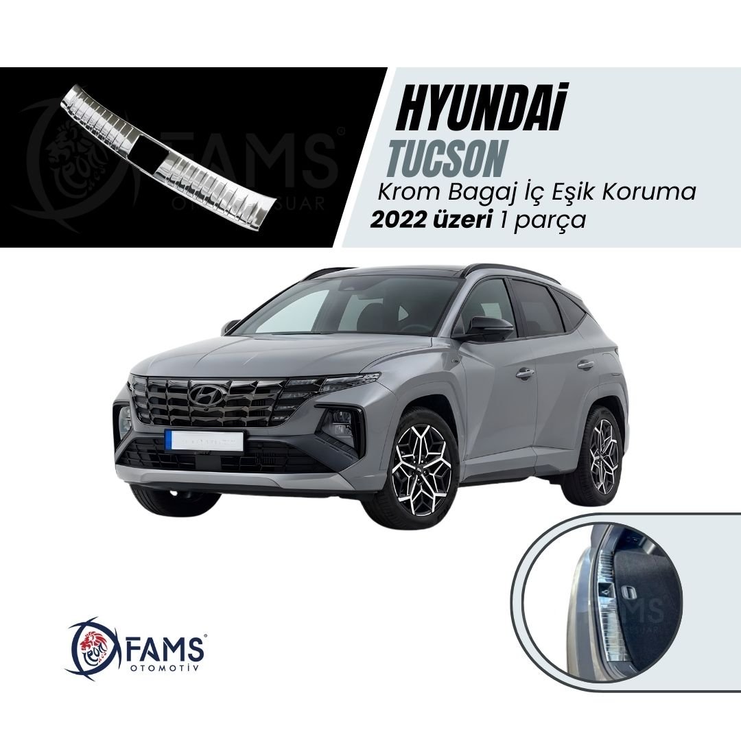 - 🚙 Hyundai Tucson 2022 ve Üzeri – Parlak Krom Bagaj İç Eşik Koruma 2 Parça Paslanmaz Çelik (P.Çelik)