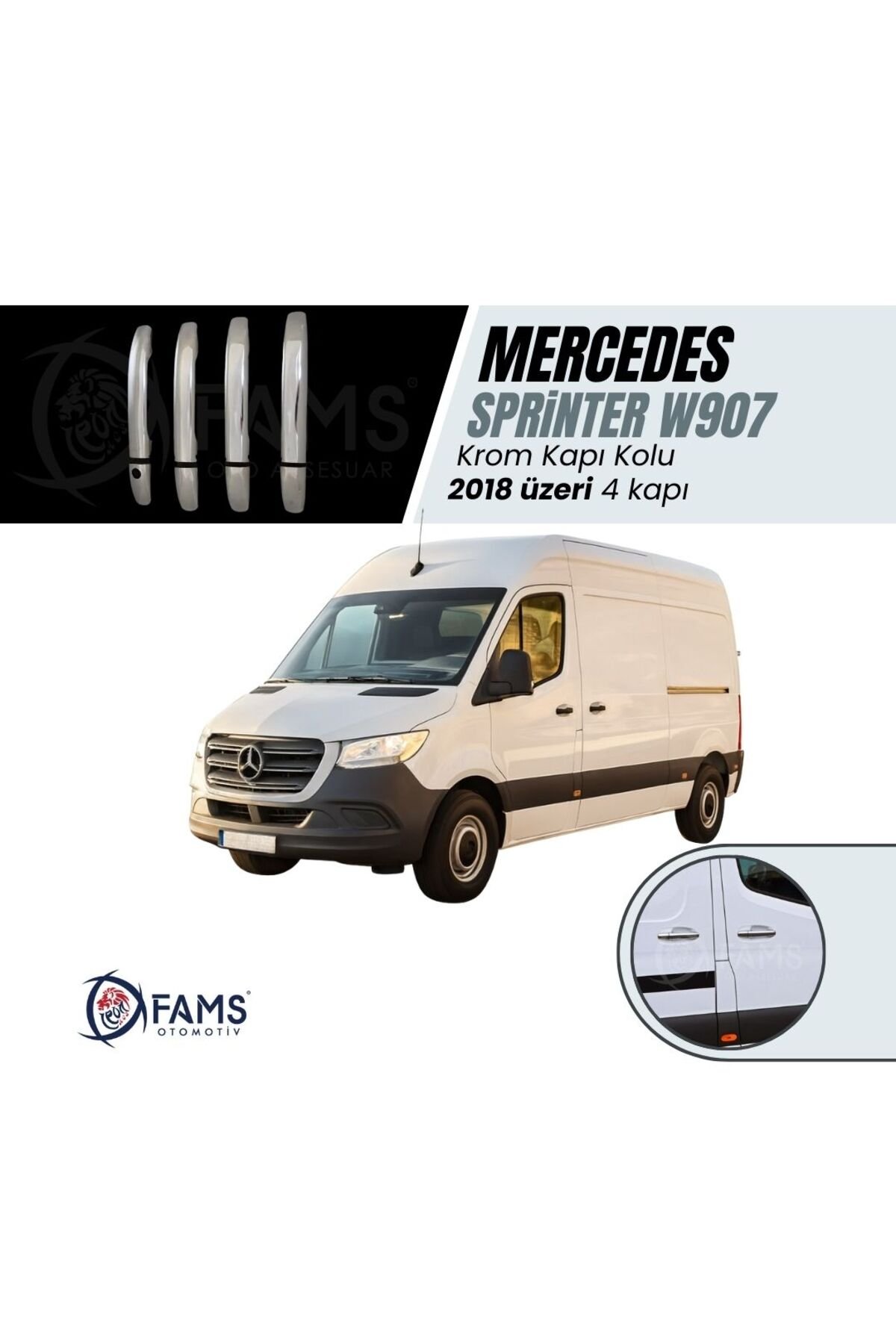 Mercedes Sprinter W907 Krom Kapı Kolu 4 Kapı 2018 Ve Üzeri Paslanmaz Çelik Mercedes Sprinter W907 modeli için özel olarak tasarlanmış, 2018 ve üzeri modellerle uyumlu krom kapı kolları.; Paslanmaz çelik malzemeden üretilmiş olup, dayanıklılığı ve şık görünümüyle dikkat çeker.; 4 kapı için tam set halinde sunulur, aracınızın her kapısına kolayca monte edilebilir.; Uzun ömürlü kullanım vaat eden bu kapı kolları, Mercedes Sprinter’ınızın dış görünümünü zenginleştirir.; Yapışma arttırıcı primer mendil hediye FAMS OTO AKSESUAR GÜVENCESİYLE – GENEL ÜRÜN BİLGİLENDİRME METNİ 🔔 DİKKAT! Değerli müşterimiz, ürününüzü araca uygulamadan önce kesinlikle ürünün yönlerini doğru uygulamak amacıyla montaj denemesi yapmadan yerleşimini kontrol ediniz.; Ürününüzün doğru şekilde uygulanması, hem kullanım ömrünü hem de estetik görünümünü doğrudan etkilemektedir.; Yanlış yapılan montaj sonrasında sök-tak yapılan ürünler yapışkan özelliğini kaybetmektedir.; Bu nedenle bu tür durumlarda ürün hasarlı olarak değerlendirilip maalesef iadesi kabul edilememektedir.; 🔍 ÜRÜN DETAYLARI • Oto Krom Aksesuarımız, 3D kalıplama teknolojisiyle üretilmiş olup aracınızın hatlarına mükemmel uyum sağlar.; • Krom ürünler A sınıfı A 304 kalite paslanmaz çelikten üretilmektedir.; • Paslanmaz çelik yapısı sayesinde dış etkenlere karşı maksimum dayanıklılık gösterir, uzun süre boyunca ilk günkü parlaklığını ve formunu korur.; • Bu ürün, estetik ve koruyucu amaçlı geliştirilmiş bir aksesuar ürünü olup, oto yedek parçası değildir.; 🛡️ GARANTİ KOŞULLARI • Tüm krom ürünlerimiz, doğru montaj yapıldığı takdirde 2 yıl garantilidir.; • Montaj hatalarından kaynaklı deformasyonlar garanti kapsamı dışındadır.; 📦 GÖNDERİM ve PAKETLEME BİLGİLERİ • Siparişleriniz, en geç 3 iş günü içerisinde anlaşmalı kargo firmaları aracılığıyla adresinize gönderilir.; • Tüm ürünler, taşıma sürecinde deformasyona karşı özel olarak paketlenmektedir.; 🔒 Teslimat Anında Dikkat Edilmesi Gerekenler: Kargonuzu mutlaka kargo görevlisinin önünde kontrol ediniz.; Herhangi bir hasar, eksik parça ya da sorun olması halinde mutlaka “Hasar Tespit Tutanağı” düzenlettiriniz.; (hasar tespit tutanağı olmayan hasarlı iadeler maalesef kabul edilememektedir.; ) Koruyucu bandı sökülmüş, çizilmiş veya yeniden satışa uygun olmayan ürünlerin iadesi kabul edilmemektedir.; 🛠️ MONTAJ BİLGİLERİ • Montaj işlemi son derece kolaydır; ekstra profesyonel destek gerekmez.; • Uygulama yapılacak yüzeyin temizliği önemlidir.; Ürün ile birlikte gönderdiğimiz Primer mendil ile veya tiner, alkol, ispirto ile yüzeyi temizleyin ve tamamen kurumasını bekleyin.; • Ürünün iç yüzeyindeki çift taraflı bandı sökmeden önce parçayı aracınızda prova ediniz.; • Bandı söktükten sonra montaj öncesinde hafifçe ısıtarak (örneğin saç kurutma makinesi ile) yapışma gücünü artırabilirsiniz.; • Montaj sonrası 24 saat boyunca aracınızı yıkamayınız ve basınçlı suyla temas ettirmeyiniz.; 💬 SORULARINIZ MI VAR? Bizimle iletişime geçmekten çekinmeyin.; FAMS OTO AKSESUAR olarak memnuniyetiniz bizim için her şeyden önemli!