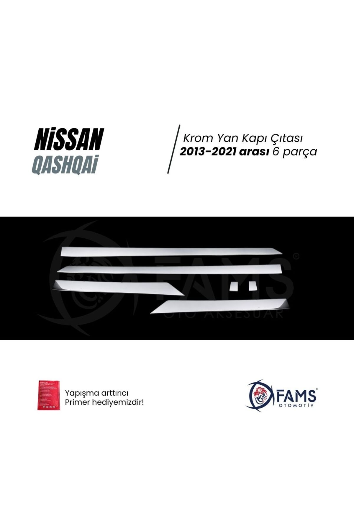 Nissan Qashqai Uyumlu Krom Yan Kapı Çıtası 6 Prç, 2013-2021 Arası P, Çelik