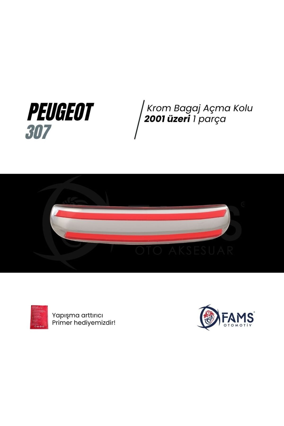 Peugeot 307 Krom Bagaj Açma Kolu 2001 Üzeri P.; Çelik Peugeot 307 model araçlar için özel olarak tasarlanmış, bagaj açma kolu.; 2001 model ve üzeri Peugeot 307 araçlarla uyumlu, uzun ömürlü kullanım sunar.; Paslanmaz çelik malzemeden üretilmiş olup, dayanıklılığı ve estetik görünümü bir arada sunar.; Kolay montaj imkanı sayesinde aracınıza hızlı ve pratik bir şekilde takılabilir.; Yapışma arttırıcı primer mendil hediye.; FAMS OTO AKSESUAR GÜVENCESİYLE – GENEL ÜRÜN BİLGİLENDİRME METNİ 🔔 DİKKAT! Değerli müşterimiz, ürününüzü araca uygulamadan önce kesinlikle ürünün yönlerini doğru uygulamak amacıyla montaj denemesi yapmadan yerleşimini kontrol ediniz.; Ürününüzün doğru şekilde uygulanması, hem kullanım ömrünü hem de estetik görünümünü doğrudan etkilemektedir.; Yanlış yapılan montaj sonrasında sök-tak yapılan ürünler yapışkan özelliğini kaybetmektedir.; Bu nedenle bu tür durumlarda ürün hasarlı olarak değerlendirilip maalesef iadesi kabul edilememektedir.; 🔍 ÜRÜN DETAYLARI • Oto Krom Aksesuarımız, 3D kalıplama teknolojisiyle üretilmiş olup aracınızın hatlarına mükemmel uyum sağlar.; • Krom ürünler A sınıfı A 304 kalite paslanmaz çelikten üretilmektedir.; • Paslanmaz çelik yapısı sayesinde dış etkenlere karşı maksimum dayanıklılık gösterir, uzun süre boyunca ilk günkü parlaklığını ve formunu korur.; • Bu ürün, estetik ve koruyucu amaçlı geliştirilmiş bir aksesuar ürünü olup, oto yedek parçası değildir.; 🛡️ GARANTİ KOŞULLARI • Tüm krom ürünlerimiz, doğru montaj yapıldığı takdirde 2 yıl garantilidir.; • Montaj hatalarından kaynaklı deformasyonlar garanti kapsamı dışındadır.; 📦 GÖNDERİM ve PAKETLEME BİLGİLERİ • Siparişleriniz, en geç 3 iş günü içerisinde anlaşmalı kargo firmaları aracılığıyla adresinize gönderilir.; • Tüm ürünler, taşıma sürecinde deformasyona karşı özel olarak paketlenmektedir.; 🔒 Teslimat Anında Dikkat Edilmesi Gerekenler: Kargonuzu mutlaka kargo görevlisinin önünde kontrol ediniz.; Herhangi bir hasar, eksik parça ya da sorun olması halinde mutlaka “Hasar Tespit Tutanağı” düzenlettiriniz.; (hasar tespit tutanağı olmayan hasarlı iadeler maalesef kabul edilememektedir.; ) Koruyucu bandı sökülmüş, çizilmiş veya yeniden satışa uygun olmayan ürünlerin iadesi kabul edilmemektedir.; 🛠️ MONTAJ BİLGİLERİ • Montaj işlemi son derece kolaydır; ekstra profesyonel destek gerekmez.; • Uygulama yapılacak yüzeyin temizliği önemlidir.; Ürün ile birlikte gönderdiğimiz Primer mendil ile veya tiner, alkol, ispirto ile yüzeyi temizleyin ve tamamen kurumasını bekleyin.; • Ürünün iç yüzeyindeki çift taraflı bandı sökmeden önce parçayı aracınızda prova ediniz.; • Bandı söktükten sonra montaj öncesinde hafifçe ısıtarak (örneğin saç kurutma makinesi ile) yapışma gücünü artırabilirsiniz.; • Montaj sonrası 24 saat boyunca aracınızı yıkamayınız ve basınçlı suyla temas ettirmeyiniz.; 💬 SORULARINIZ MI VAR? Bizimle iletişime geçmekten çekinmeyin.; FAMS OTO AKSESUAR olarak memnuniyetiniz bizim için her şeyden önemli!