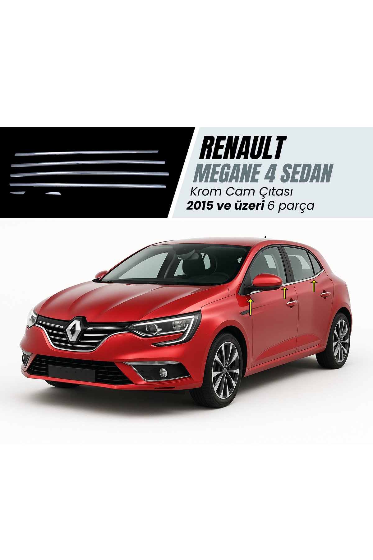 LÜTFEN DİKKAT! Değerli müşterimiz, Lütfen MONTAJ DENEMESİ yapmadan ürünü uygulamayınız.; Ürün Detayları: 3D kalıpla üretilmiş ürün, aracınıza mükemmel uyum sağlar.; Yüksek kaliteli 1. Sınıf krom malzemeden üretilmiş olup ekstra parlaklık sunar.; Paslanmaz çelikten üretilen bu ürün, dış etkenlere karşı maksimum dayanıklılık sağlar ve uzun süre ilk günkü görünümünü korur.; Garanti Koşulları: Krom ürünlerimiz, doğru montaj koşulları sağlandığında 2 yıl garantilidir.; Gönderim Bilgileri: Ürün, belirtilen teslimat adresine, anlaşmalı kargo firmalarıyla en geç 3 iş günü içinde gönderilecektir.; Ürünün güvenliği için deformasyona karşı dikkatle paketlenecektir.; Dikkat: – Paketinizi kargo görevlisinin yanında açın ve herhangi bir sorun durumunda tutanak tutturmayı unutmayın! – Koruyucu bantları sökülmüş, çizilmiş veya yeniden satışa uygun olmayan ürünlerin iadesi kabul edilmemektedir.; – Ürünü teslim almadan önce mutlaka kontrol ediniz.; – Eksik ya da hasar tespiti durumunda, görevliden “Hasar Tespit Tutanağı” istemeniz gerekmektedir.; – Bu tutanak olmadan eksik veya hasarlı ürünlerle ilgili işlem yapılamayacağını üzülerek belirtmek isteriz.; Montaj Bilgileri: Montajı kendiniz kolayca yapabilirsiniz.; Montaj yapılacak alanı tiner, ispirto veya alkol ile temizleyip kurumasını bekleyin.; Parçanın içindeki çift taraflı bandı sökmeden önce, yerleştirme denemesi yapın.; Bandı hafifçe ısıtarak (örneğin saç kurutma makinesiyle) montajı tamamlayın.; Öneri: Montajdan sonra aracınızı 24 saat boyunca yıkamamanız tavsiye edilir.; Not: Bu ürün oto yedek parçası olmayıp, aracınıza uyumlu birinci sınıf krom aksesuardır.; Herhangi bir sorunuz varsa bizimle iletişime geçmekten çekinmeyin!