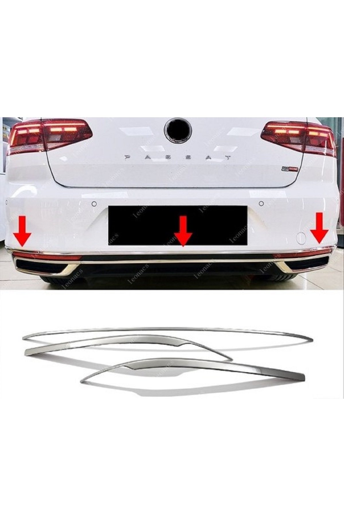 VW Passat B8,5 Krom Arka Tampon Alt Çıta 3 Parça 2019> Paslanmaz Çelik