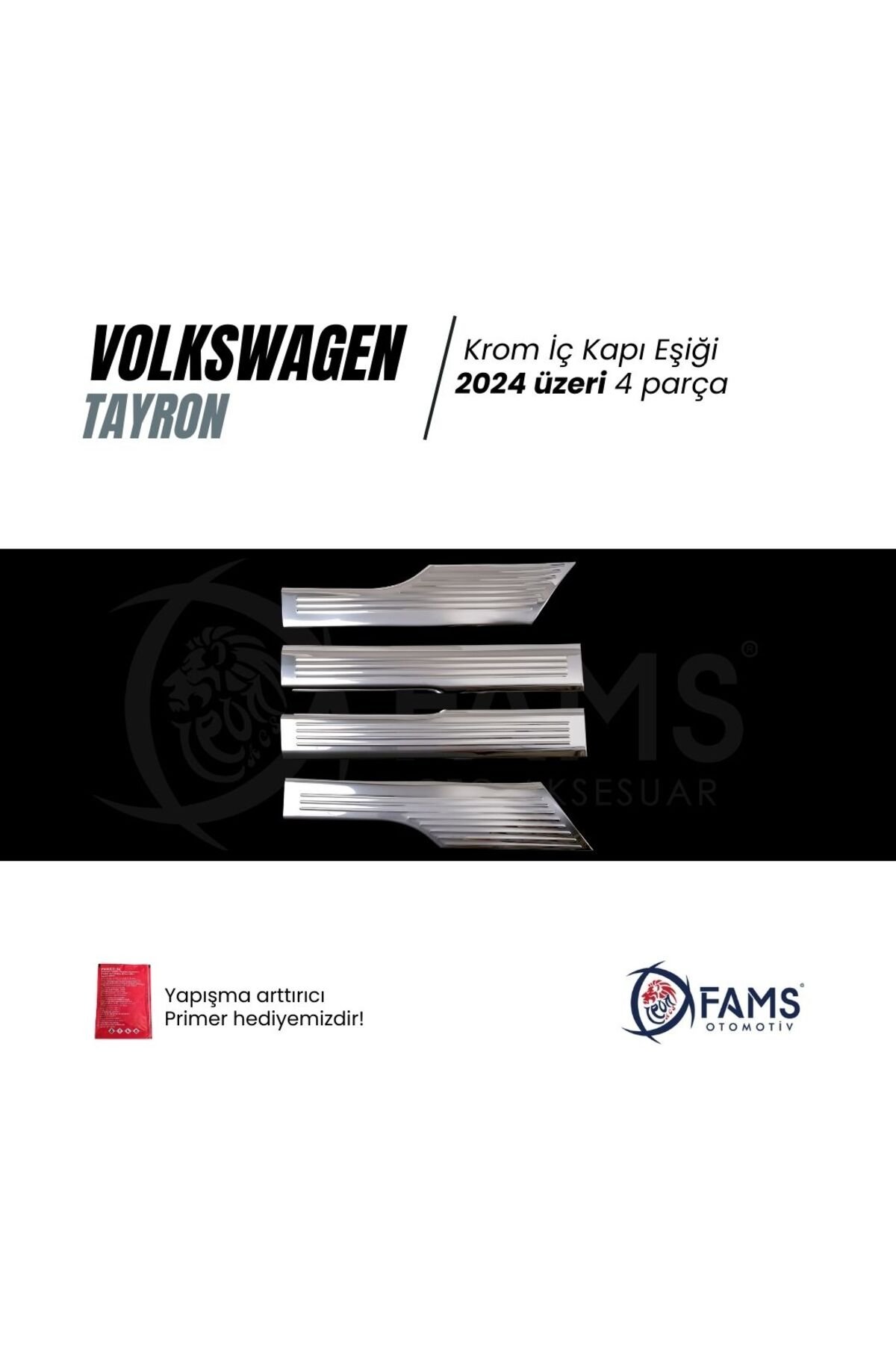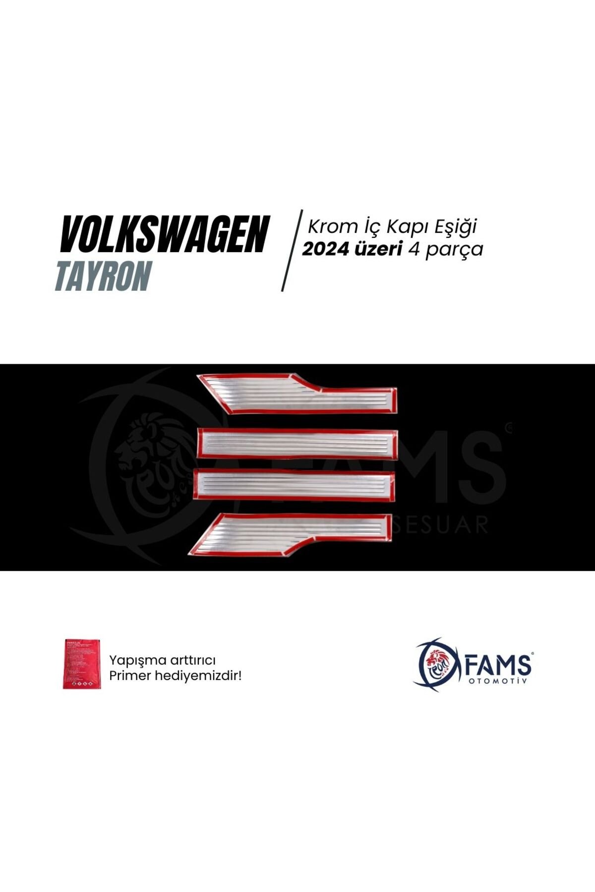 VW TAYRON Uyumlu İç Kapı eşiği 4 kapı 2024 Üzeri P.; çelik (Parlak) Aracınızı çiziklere ve sürtünmelere karşı korurken, parlak krom yüzeyiyle şık ve premium bir görünüm sağlar.; ✔ Uyumluluk: Volkswagen Tayron 2024 ve sonrası tüm kasa ve donanımlar✔ Malzeme: Yüksek kalite AISI 304 paslanmaz çelik – sağlam, paslanmaz, uzun ömürlü✔ Yüzey: Parlak krom kaplama – modern ve göz alıcı görünüm✔ Montaj: Ürün üzerinde hazır 3M bant sayesinde pratik montaj, delme-kesme gerekmez✔ Koruma: Kapı eşiği bölgelerinde oluşabilecek çizik, sürtünme ve darbeleri engeller📌 Öne Çıkan Özellikler✅ VW Tayron 2024 ve üzeri için özel üretim✅ 4 kapı için tam uyumlu set✅ Parlak krom yüzey – aracın estetiğini artırır✅ %100 paslanmaz çelik – dayanıklı ve uzun ömürlü✅ Kolay montaj – dakikalar içinde uygulanabilir✅ Hem şıklık hem de koruma sağlayan tasarım📌 Paket İçeriği4 Parça VW Tayron 2024> İç Kapı Eşiği (Parlak Paslanmaz Çelik)Hazır 3M bantlı montajKoruyucu ambalaj📌 Neden Bu Ürün?✨ Aracınıza premium parlak krom görünüm katar✨ Çizilmelere ve darbelere karşı koruma sağlar✨ %100 paslanmaz çelik – uzun yıllar güvenle kullanılır✨ FAMS Oto Aksesuar güvencesiyle birebir uyumlu ve kaliteli işçilikFAMS OTO AKSESUAR GÜVENCESİYLE – GENEL ÜRÜN BİLGİLENDİRME METNİ🔔 DİKKAT!Değerli müşterimiz, ürününüzü araca uygulamadan önce kesinlikle ürünün yönlerini doğru uygulamak amacıyla montaj denemesi yapmadan yerleşimini kontrol ediniz.; Ürününüzün doğru şekilde uygulanması, hem kullanım ömrünü hem de estetik görünümünü doğrudan etkilemektedir.; Yanlış yapılan montaj sonrasında sök-tak yapılan ürünler yapışkan özelliğini kaybetmektedir.; Bu nedenle bu tür durumlarda ürün hasarlı olarak değerlendirilip maalesef iadesi kabul edilememektedir.; 🔍 ÜRÜN DETAYLARI• Oto Krom Aksesuarımız, 3D kalıplama teknolojisiyle üretilmiş olup aracınızın hatlarına mükemmel uyum sağlar.; • Krom ürünler A sınıfı A 304 kalite paslanmaz çelikten üretilmektedir.; • Paslanmaz çelik yapısı sayesinde dış etkenlere karşı maksimum dayanıklılık gösterir, uzun süre boyunca ilk günkü parlaklığını ve formunu korur.; • Bu ürün, estetik ve koruyucu amaçlı geliştirilmiş bir aksesuar ürünü olup, oto yedek parçası değildir.; 🛡️ GARANTİ KOŞULLARI• Tüm krom ürünlerimiz, doğru montaj yapıldığı takdirde 2 yıl garantilidir.; • Montaj hatalarından kaynaklı deformasyonlar garanti kapsamı dışındadır.; 📦 GÖNDERİM ve PAKETLEME BİLGİLERİ• Siparişleriniz, en geç 3 iş günü içerisinde anlaşmalı kargo firmaları aracılığıyla adresinize gönderilir.; • Tüm ürünler, taşıma sürecinde deformasyona karşı özel olarak paketlenmektedir.; 🔒 Teslimat Anında Dikkat Edilmesi Gerekenler:Kargonuzu mutlaka kargo görevlisinin önünde kontrol ediniz.; Herhangi bir hasar, eksik parça ya da sorun olması halinde mutlaka “Hasar Tespit Tutanağı” düzenlettiriniz.; (hasar tespit tutanağı olmayan hasarlı iadeler maalesef kabul edilememektedir.; )Koruyucu bandı sökülmüş, çizilmiş veya yeniden satışa uygun olmayan ürünlerin iadesi kabul edilmemektedir.; 🛠️ MONTAJ BİLGİLERİ• Montaj işlemi son derece kolaydır; ekstra profesyonel destek gerekmez.; • Uygulama yapılacak yüzeyin temizliği önemlidir.; Ürün ile birlikte gönderdiğimiz Primer mendil ile veya tiner, alkol, ispirto ile yüzeyi temizleyin ve tamamen kurumasını bekleyin.; • Ürünün iç yüzeyindeki çift taraflı bandı sökmeden önce parçayı aracınızda prova ediniz.; • Bandı söktükten sonra montaj öncesinde hafifçe ısıtarak (örneğin saç kurutma makinesi ile) yapışma gücünü artırabilirsiniz.; • Montaj sonrası 24 saat boyunca aracınızı yıkamayınız ve basınçlı suyla temas ettirmeyiniz.; 💬 SORULARINIZ MI VAR?Bizimle iletişime geçmekten çekinmeyin.; FAMS OTO AKSESUAR olarak memnuniyetiniz bizim için her şeyden önemli!